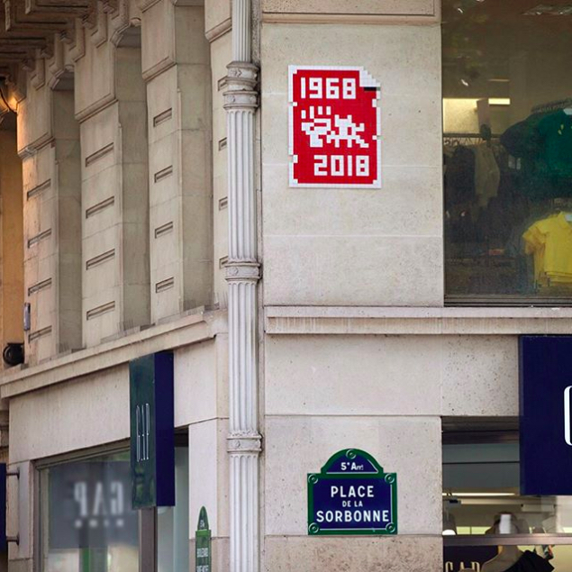 It is true that all these little Space Invaders were cheerful but a little boring & repetitive; the artist changes gear and it is early June 2018 that we discover his first tribute to May 68; other Invaders related to news, culture, are born everywhere at this moment! The invasion continues!