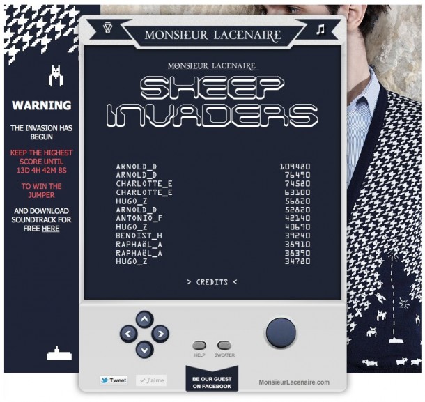 And that’s not all ; the invaders found themselves everywhere after 2012; between Monsieur Lacenaire, and his mini Sheep Invaders collection: jacquard sweaters that have made a name for themselves with just a hijacking of the brand by replacing “Space” by “Sheep” and a funny little game very inspired as you can see – (