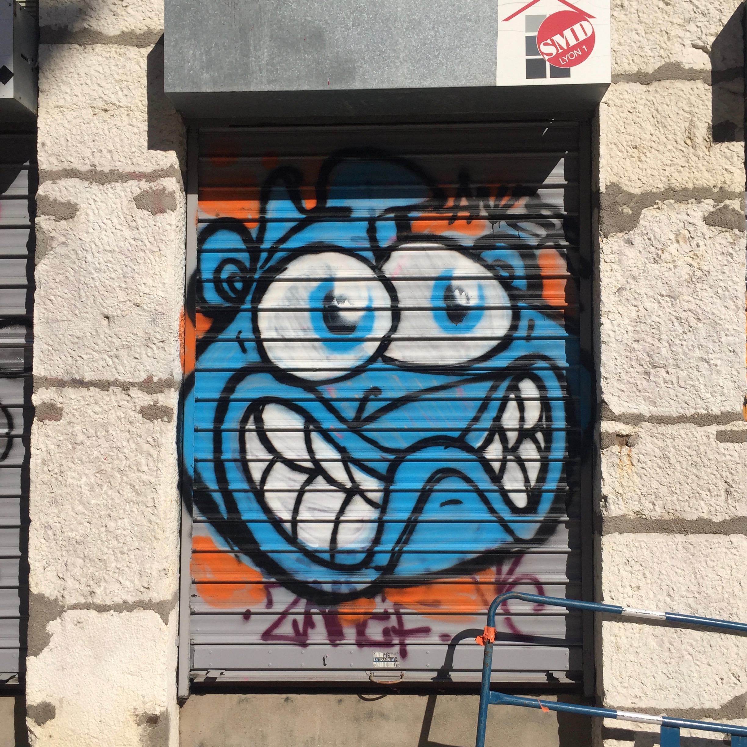It is certainly one of the least used streets of Lyon; but there is a concentrate of Street Art. Between the old fresco of “Gainsbourg” done by Yandy Graffer, and almost impossible to take pictures by lack of hindsight; the work of SPONE with his special characters and the frescoes of restaurants and cabarets; the rue des Tables Claudiennes is a must for anyone looking for Street Art in Lyon! Not to mention all the collages & other graffiti you will find in this street.