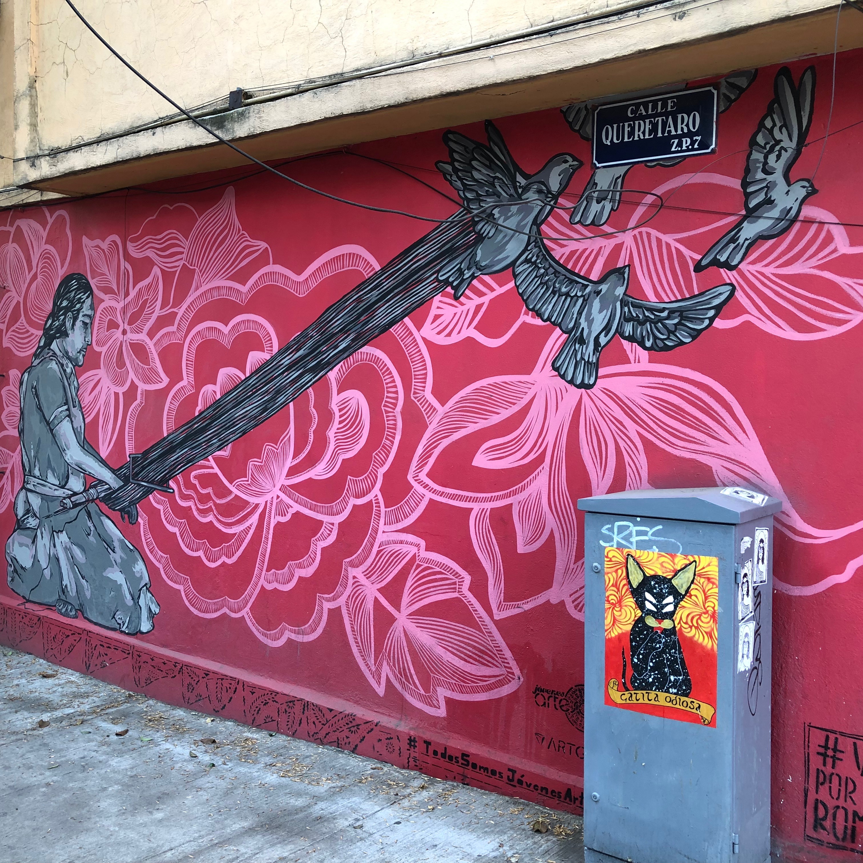 9 July 2019Going to Mexico City to discover real Mexican Street Art is like looking for a needle in a haystack! The city is simply sprawling and arriving there for only a day of transit; I did not see how to make it happen. Knowing that it is better to avoid certain neighborhoods where Street Art and graffiti are kings! Once is not customary I decided to contact the Tours that organize Street Art’ visits. It’s Street Art Chilango that works with many Mexican artists who has answered me! My goal was not to see the works of international artists who are very numerous in the city; but really to discover the Mexican artists. So with Abril, a super friendly guide who does not lack anecdotes, we went on a spree in the neighborhood of Roma Norte very very early in the morning!