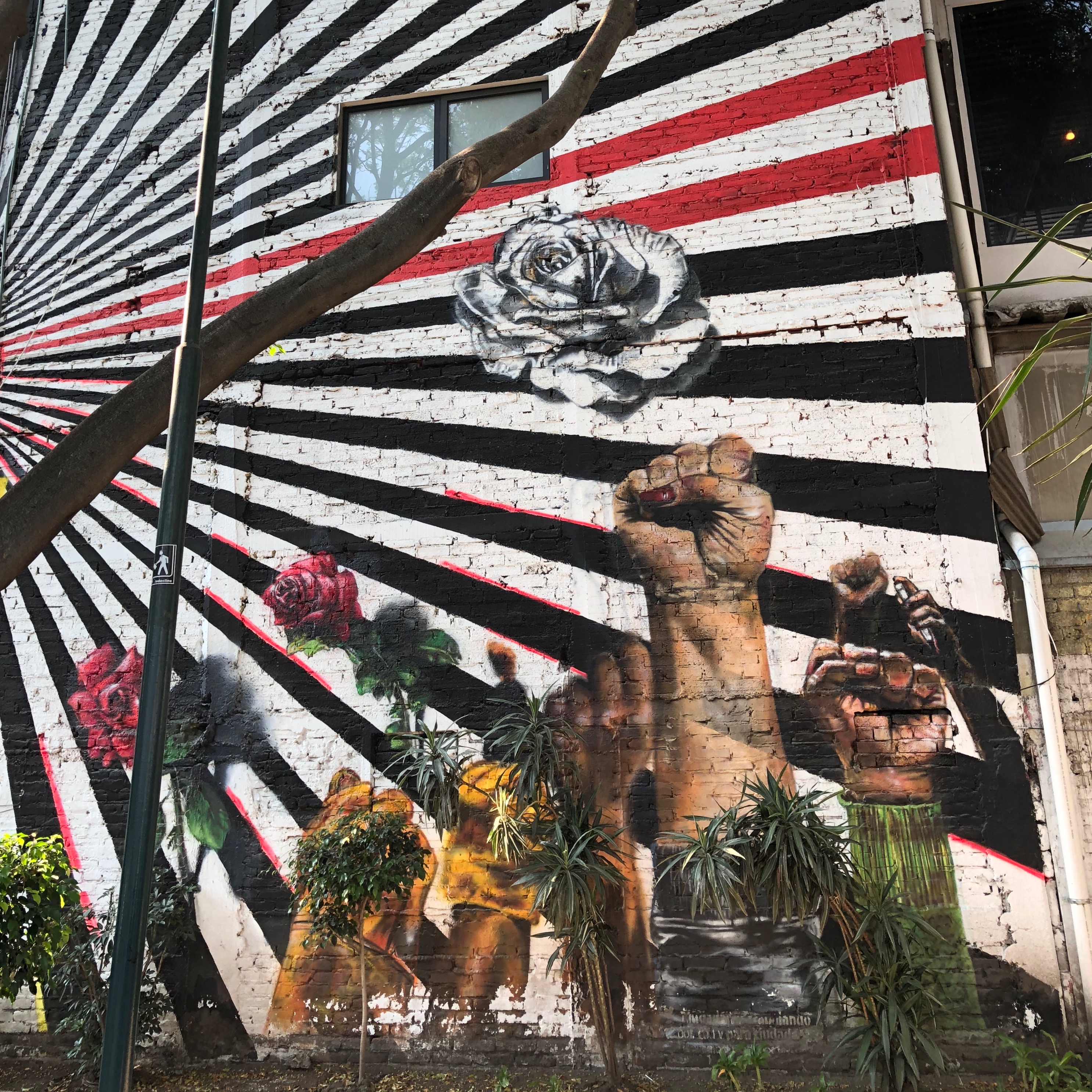 This gigantic interpretation of the Mexican flag by the young local artist jm.mxl represents the importance they attach to their fundamental values. Green means hope, joy and love. White: peace and honesty and red: rusticity, bravery, strength and courage. The eagle which predominates in this realization takes all its importance in the district of Roma Norte. According to legend, the lost Aztecs looking for a place to establish their city saw an eagle on a cactus eating a snake. They detected it as a sign and founded their capital, now Mexico City. The district of Roma Norte is the district that has welcomed the different indigenous tribes and its inhabitants today have build a strong collision in a very coherent neighborhood where living together is a reality and a daily force. You will also find during the visit that the indigenous tribes are more than honored in this neighborhood of Roma Norte!