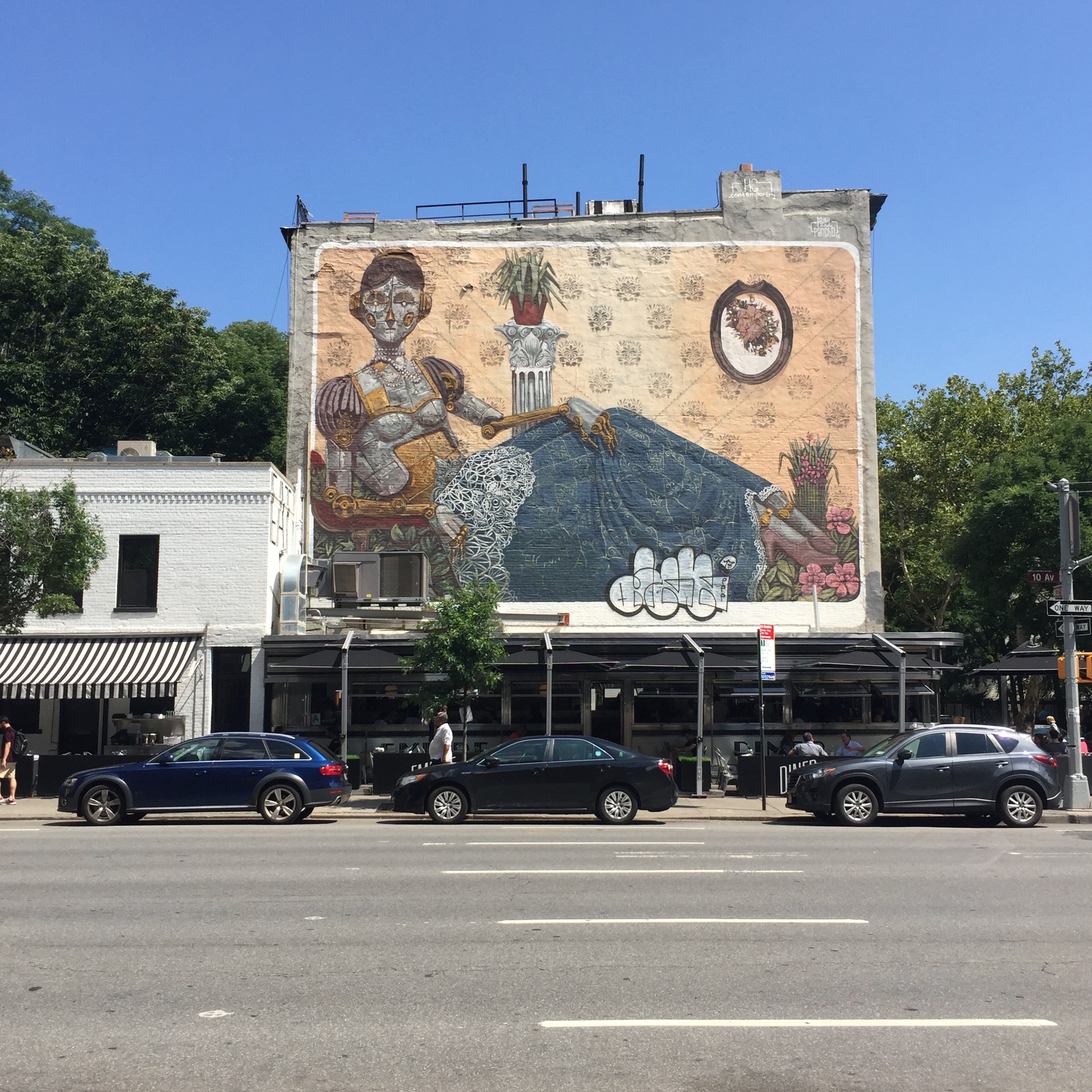 I’m not going to hide the fact this tribute to Roy Lichtenstein deeply touched me. This resumption of Lichtenstein’s own style, this dotted line, his comic bubble style, the way hair is drawn, reinforces the power of the tribute. An amazing worked housed on the terrace of an unpretentious hotel on the Upper East Side.