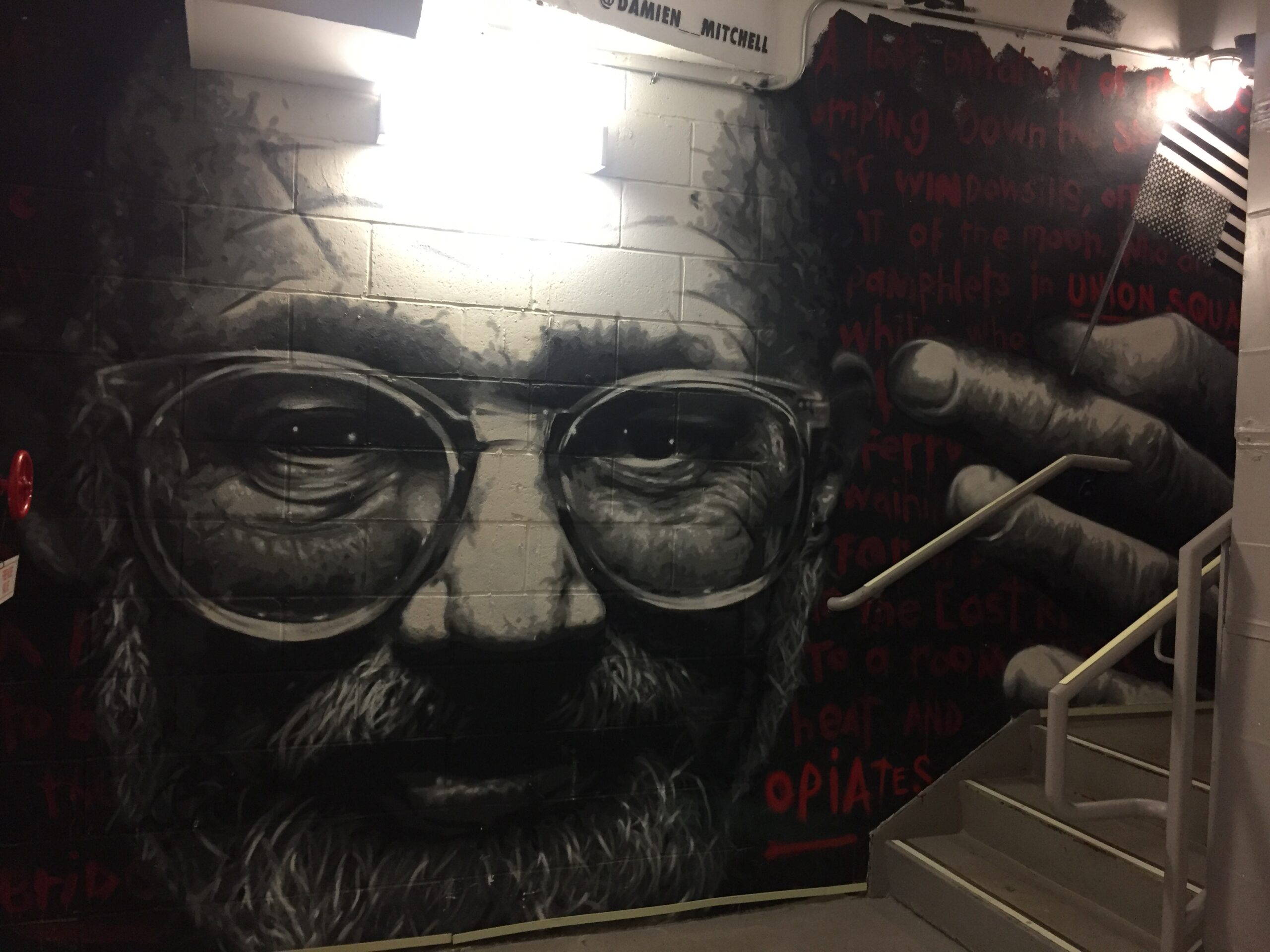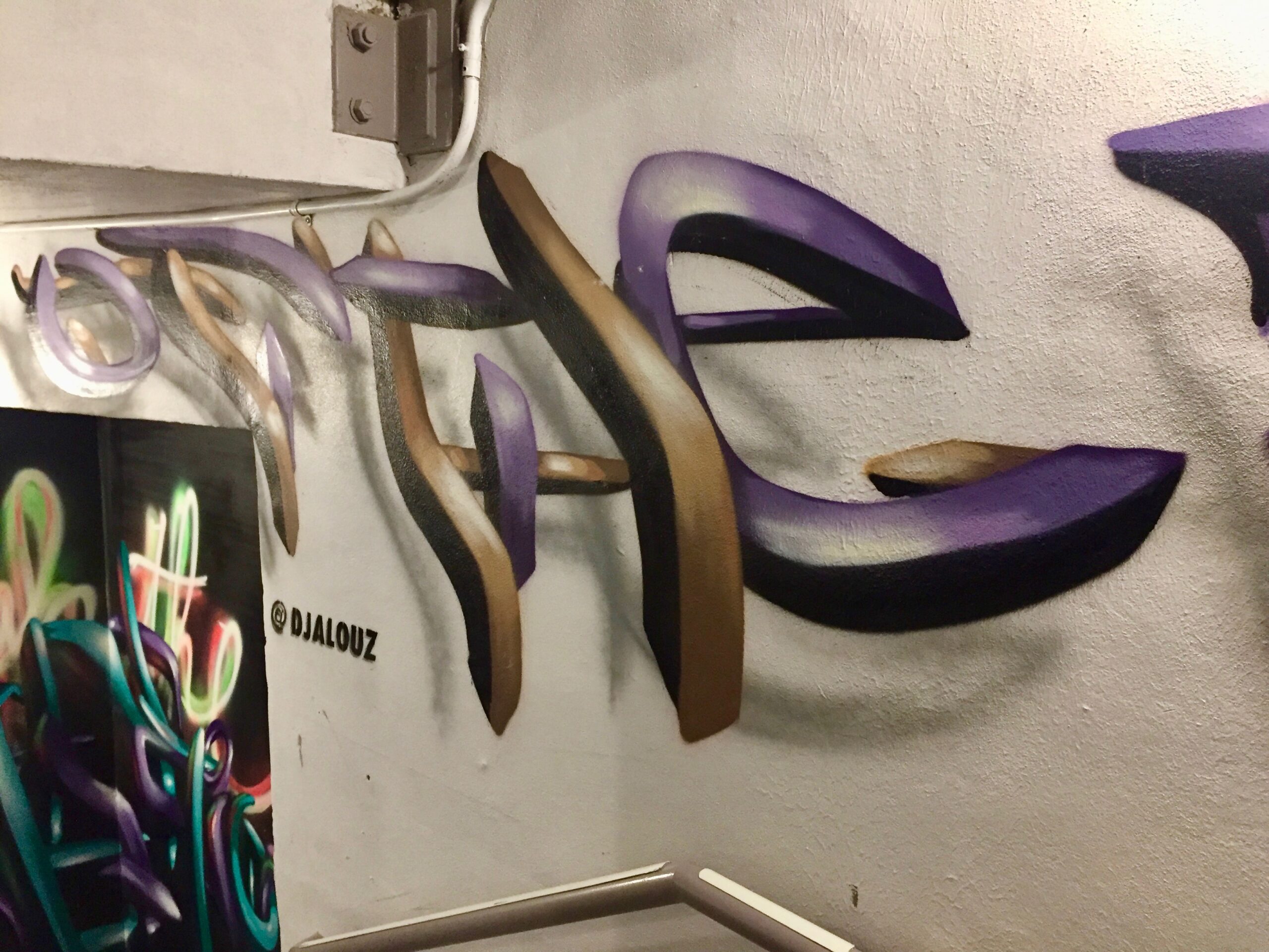 We go down the floors as if we were in a montage with a leitmotif: Graffiti follows the portraits, the recognisable 3D stylistics of the French artist Djalouz, then the faces of the “Bowery Boys” by Topaz which remind us astonishingly of the film Gangs of New-York whose story took place in the Five Points district. Or a magnificent portrait of Lou Reed who lived on the Lower East Side for many years.