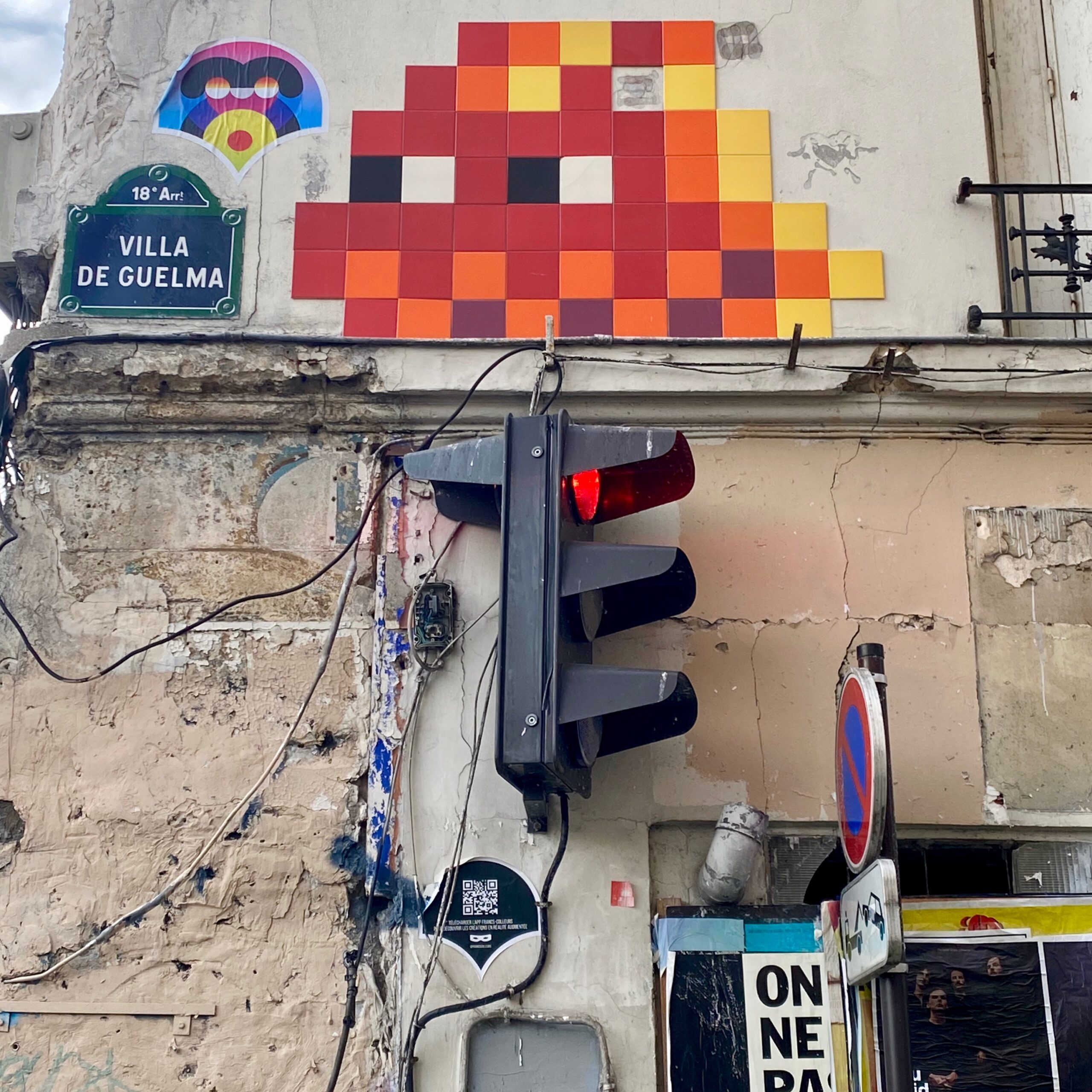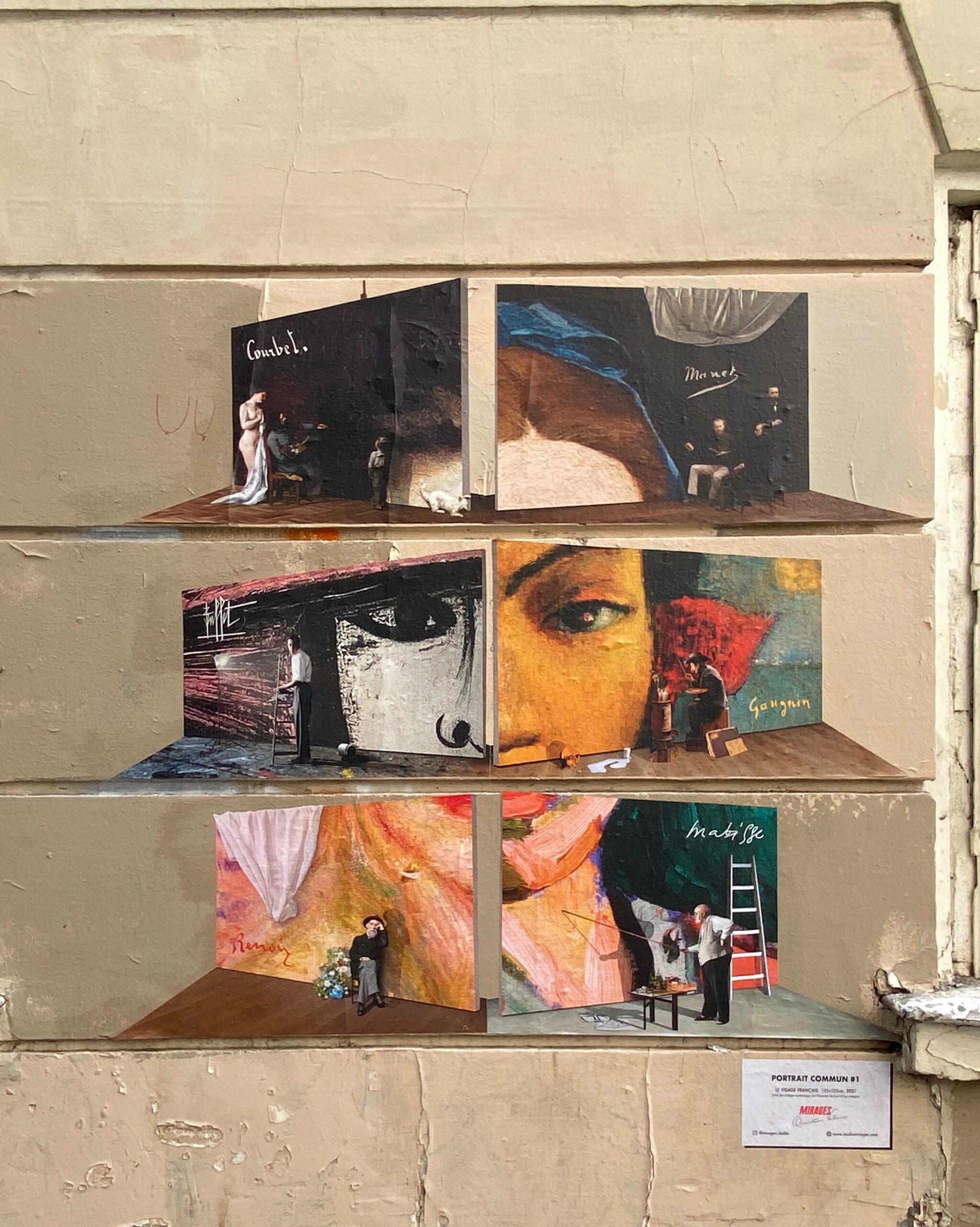 If you venture there, even when Montmartre is crowded with tourists, you can find peace and quiet and admire a very nice child’s portrait made by the artist Nô or the excellent work of Mirages which composes faces from masterpieces of artists such as Picasso, Velasquez, Gauguin, Courbet, Matisse…