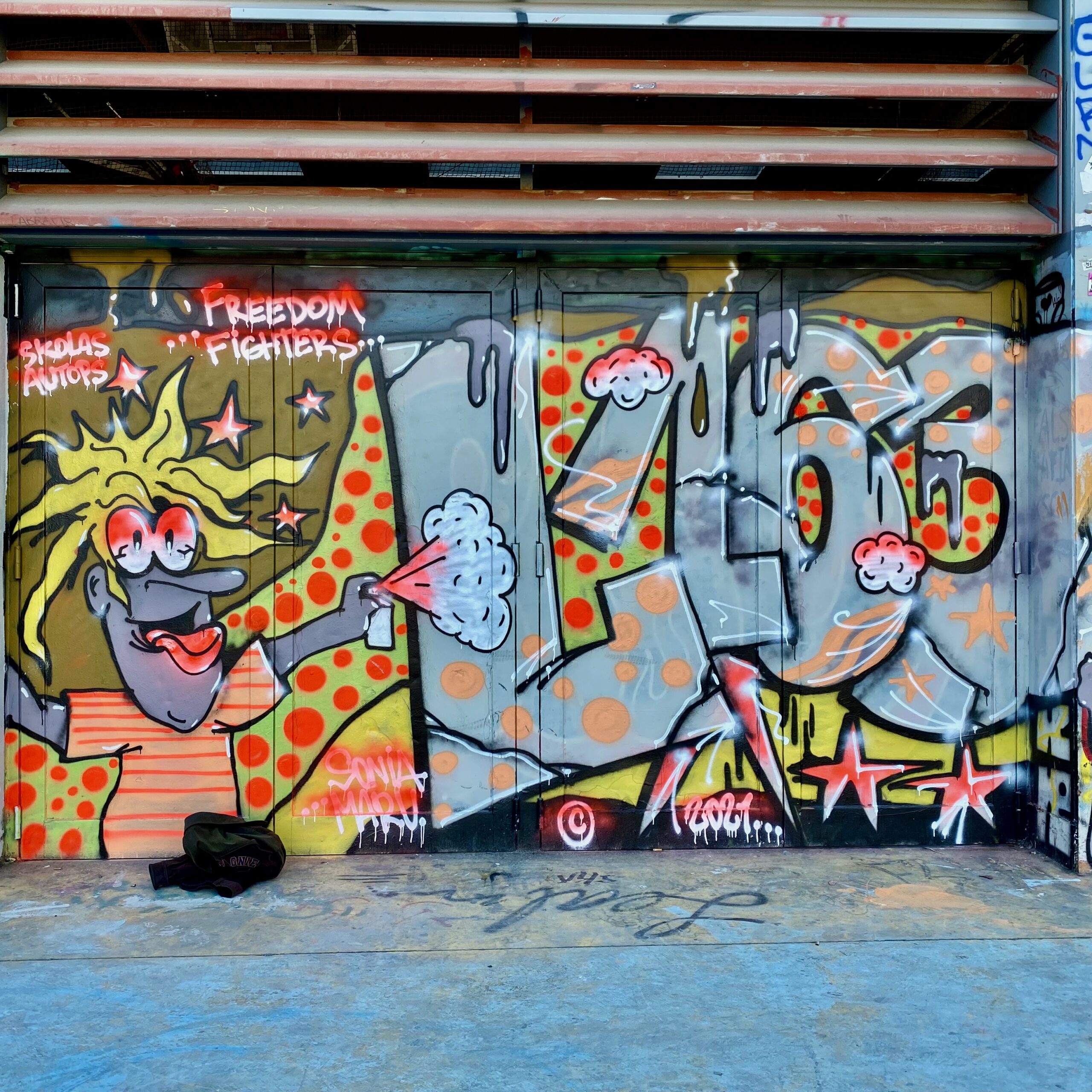 As we approach the Garden, the shutters give way to much flashier structured blazes! As you can imagine, when you see a lot of graffiti, you see a lot of styles! Everything here is explosive!