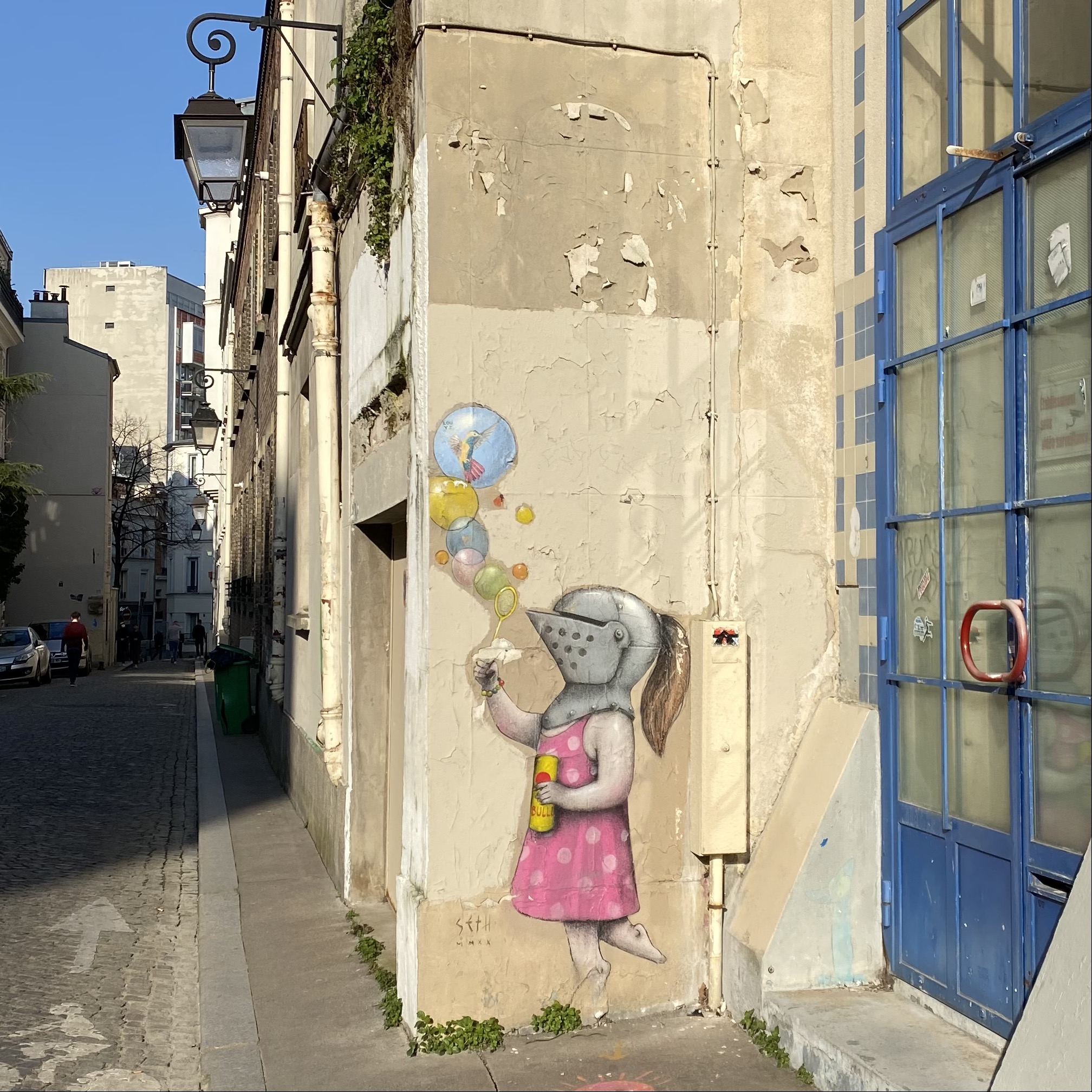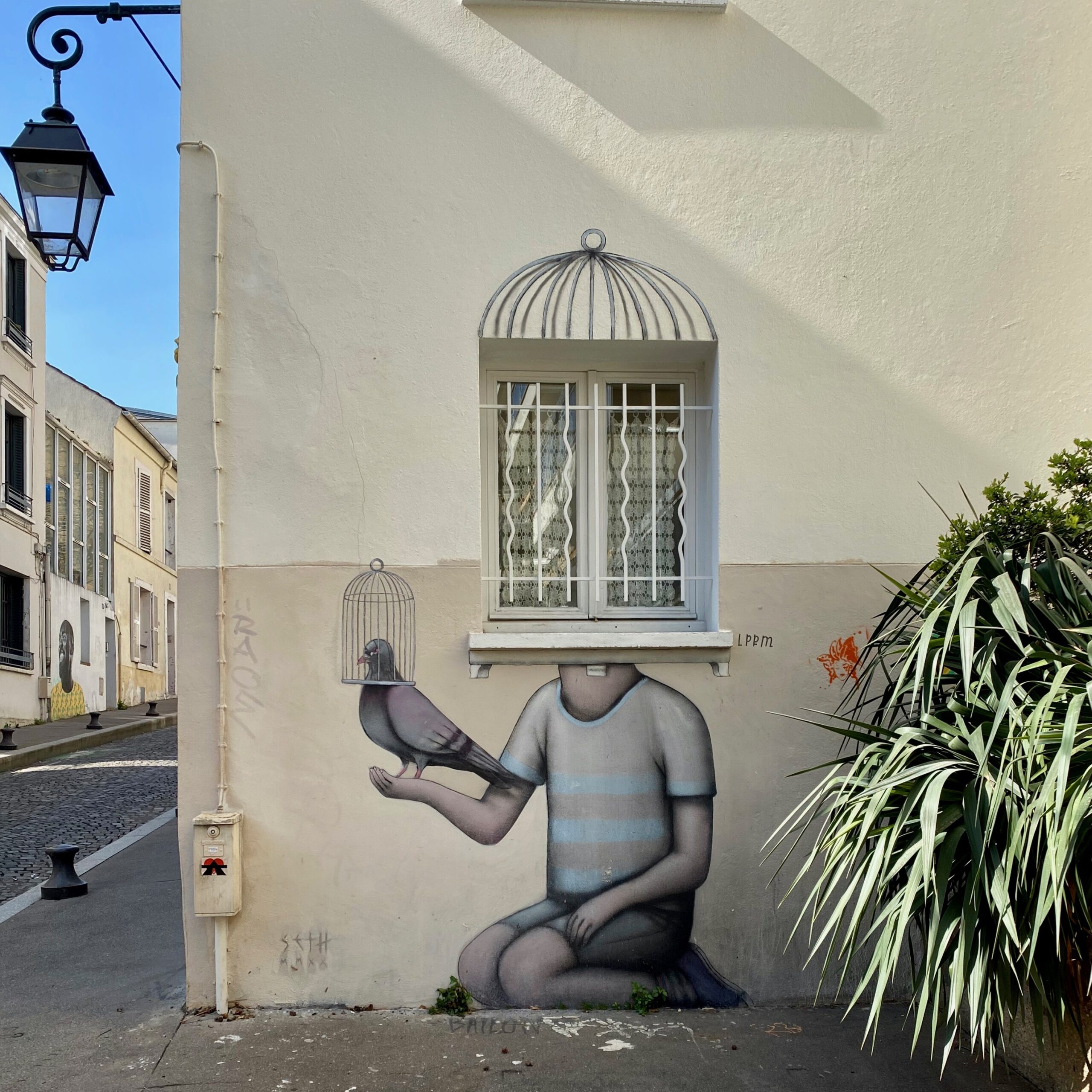 6 May 2022A few decades ago, my age allows me to affirm it, Street Art in the the Butte aux cailles was limited to a few tags and if you were a bit lucky you could discover one or two stencils by the artist Miss Tic. Then the Street Art craze invaded the 13th arrondissement of Paris and the Butte aux Cailles started to be covered with colours… The artist Seth made a large contribution to this boom. He is joined by the great names of French street art, such as Jef Aérosol, Philippe Baudelocque and Kashink. What is really interesting in this little village far from the Parisian hubbub is the emergence of new artists and in particular an impressive wave of committed female artists; which is not the case in all the capitals of the world! I will therefore try in this new article to offer you a panel of the artists you could discover if you venture there… without forgetting the current events of the place of course!