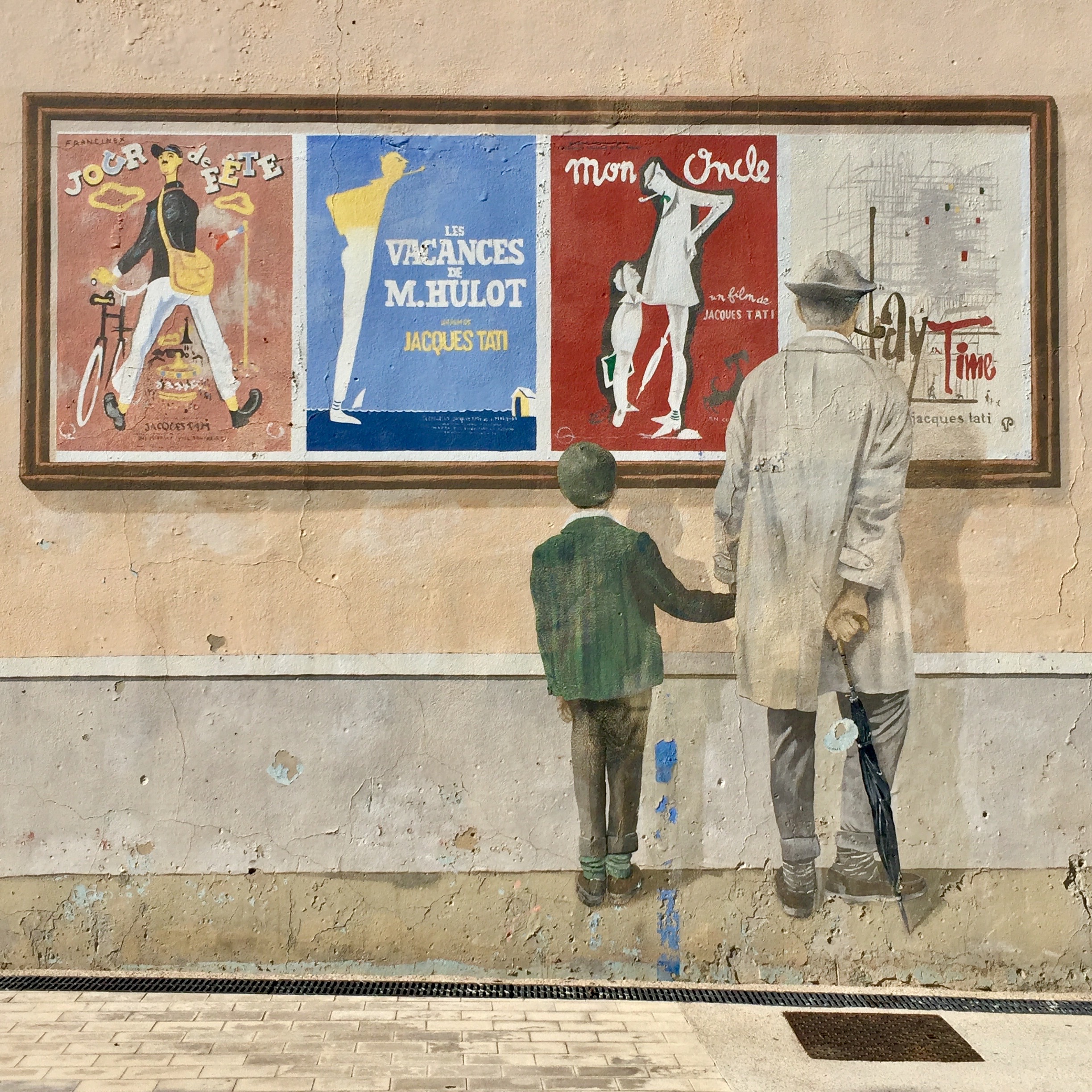 Personnellement mis à part quelques fresques qui valent le détour comme l’immense Marilyn Monroe à côté de la Gare, Buster Keaton sur le boulevard ou encore l’envers du décors pour la qualité de sa profondeur de champs; beaucoup d’entres-elle laissent perplexe. Comme vous le voyez sur la photo que j’ai choisie pour illustrer ce billet : Mélanger Louis de Funès à Mickey ou encore Charlie Chaplin fait un très beau trompe l’œil… Mais question hommage ; je trouve cela un peu brouillon. Je ne vais pas m’étendre sur le sujet et juste vous montrer toutes les fresques que j’ai trouvée sur un parcours de 5 Km tout de même ; comme cela vous pourrez vous faire votre propre opinion.