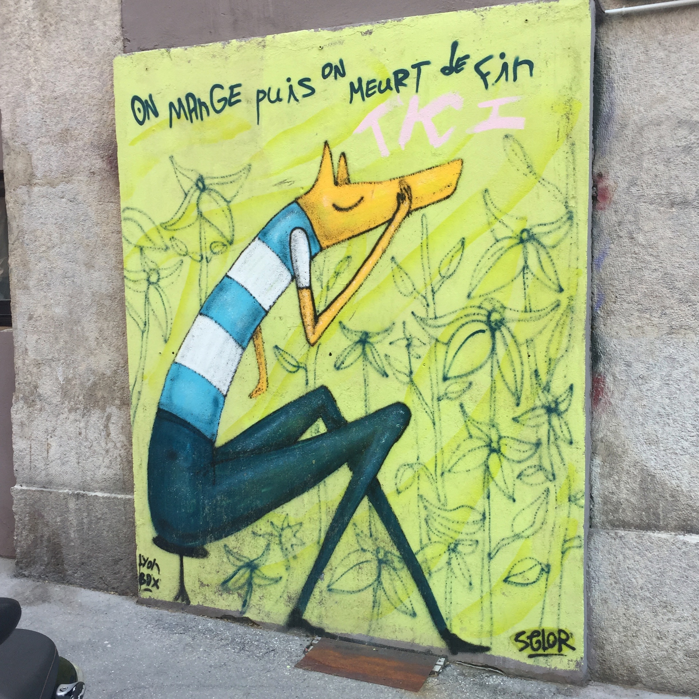 Vous l’aurez compris, le Street Art à Lyon sur les pentes de la Croix-Rousse est plus que varié ! Ci-dessus, vous découvrirez une œuvre de David Selor, peintre reconnu internationalement – rue Lemot-. Ou encore, les jambes insolites de l’artiste CAJ rentrant « droit dans le mur » tel le passe-muraille de Marcel Aymé que l’on retrouve en bas de la montée Saint Sébastien, ou encore rue de l’abbé Rozier.