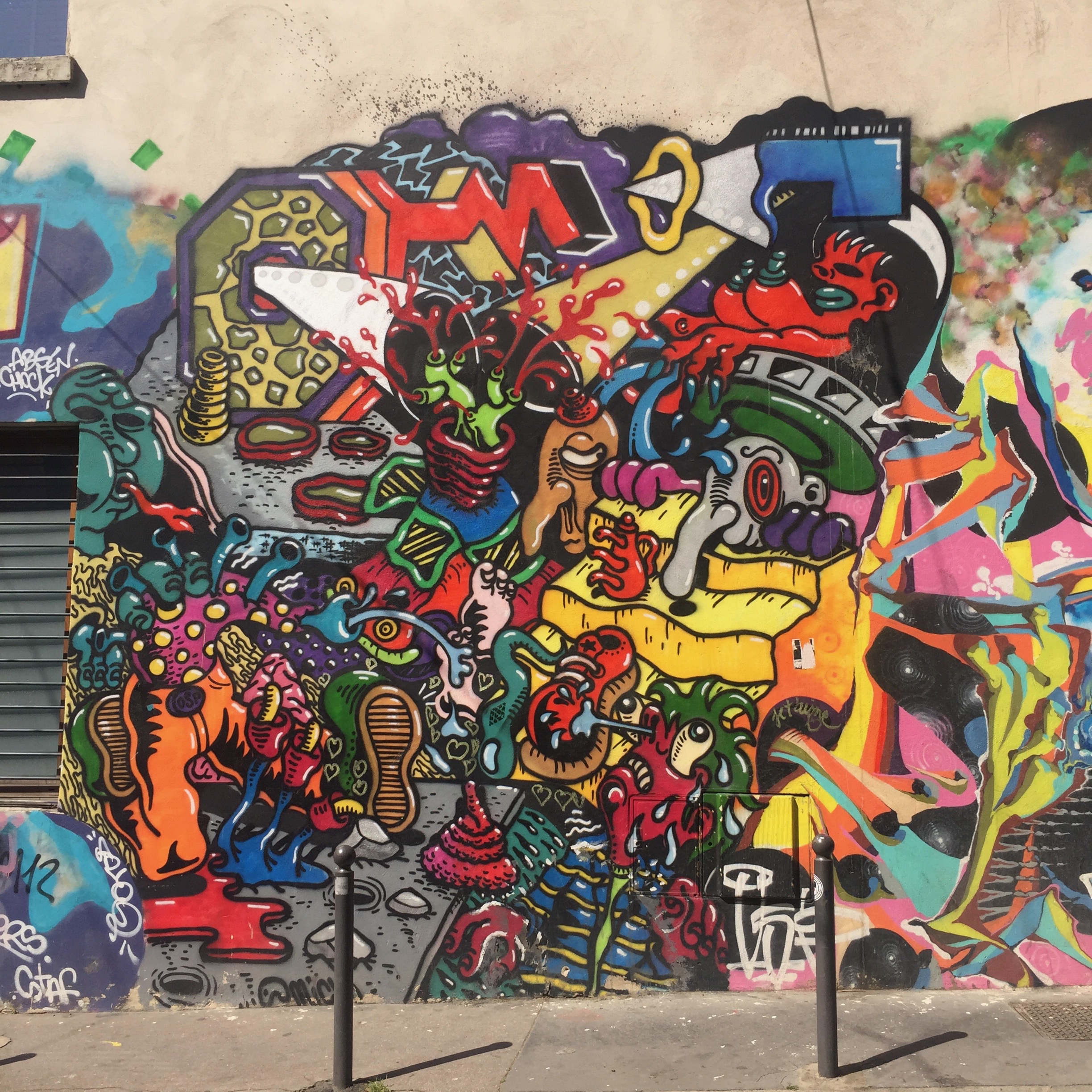 La fresque rue Lemot a été faite par des artistes des crews OSP-2012-NWO-DKR-1984, notamment Omick et Spé avec leur style inimitable