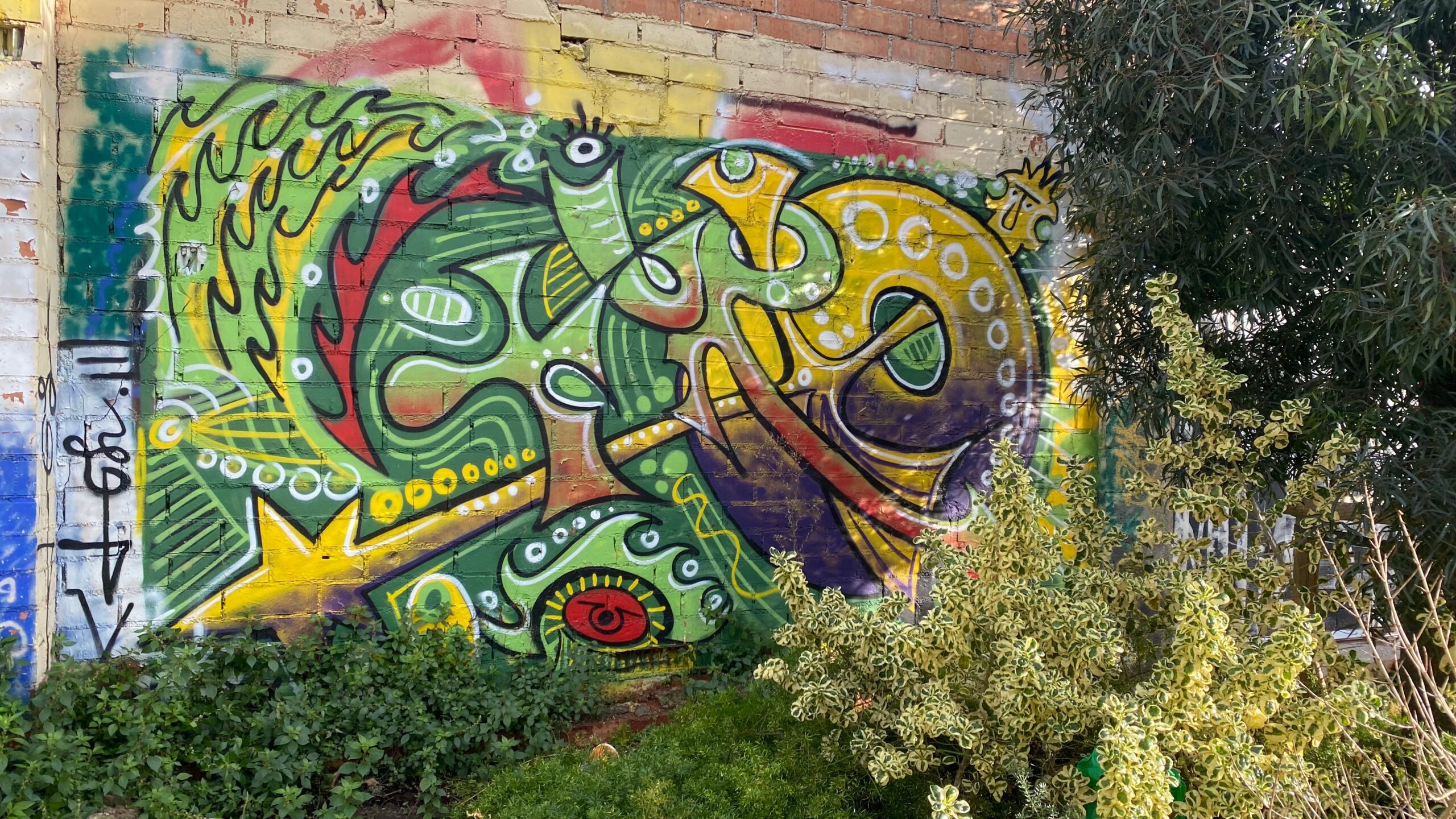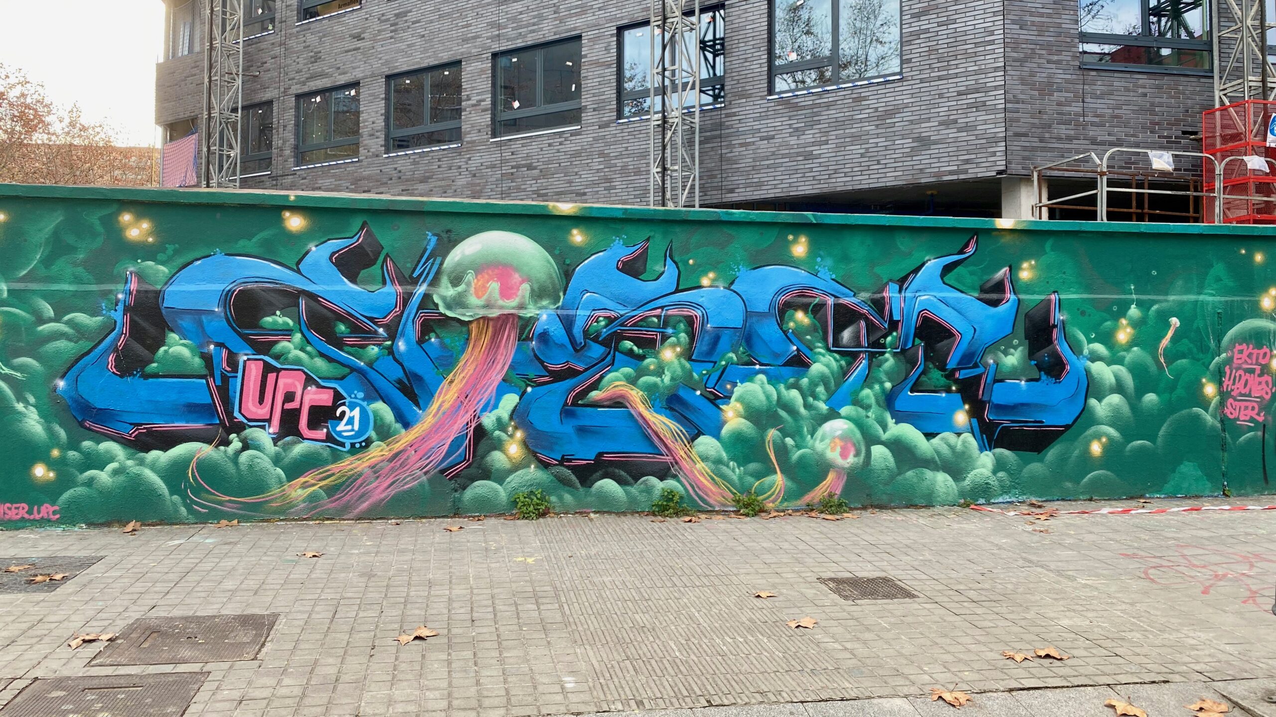 Avant de sortir du lieu et de continuer cette découverte du Street Art à Barcelone, je ne peux m’empêcher de partager avec vous l’entrée de La Escocesa et son incroyable mur de céramique, faisant face à une fresque presque surréaliste !