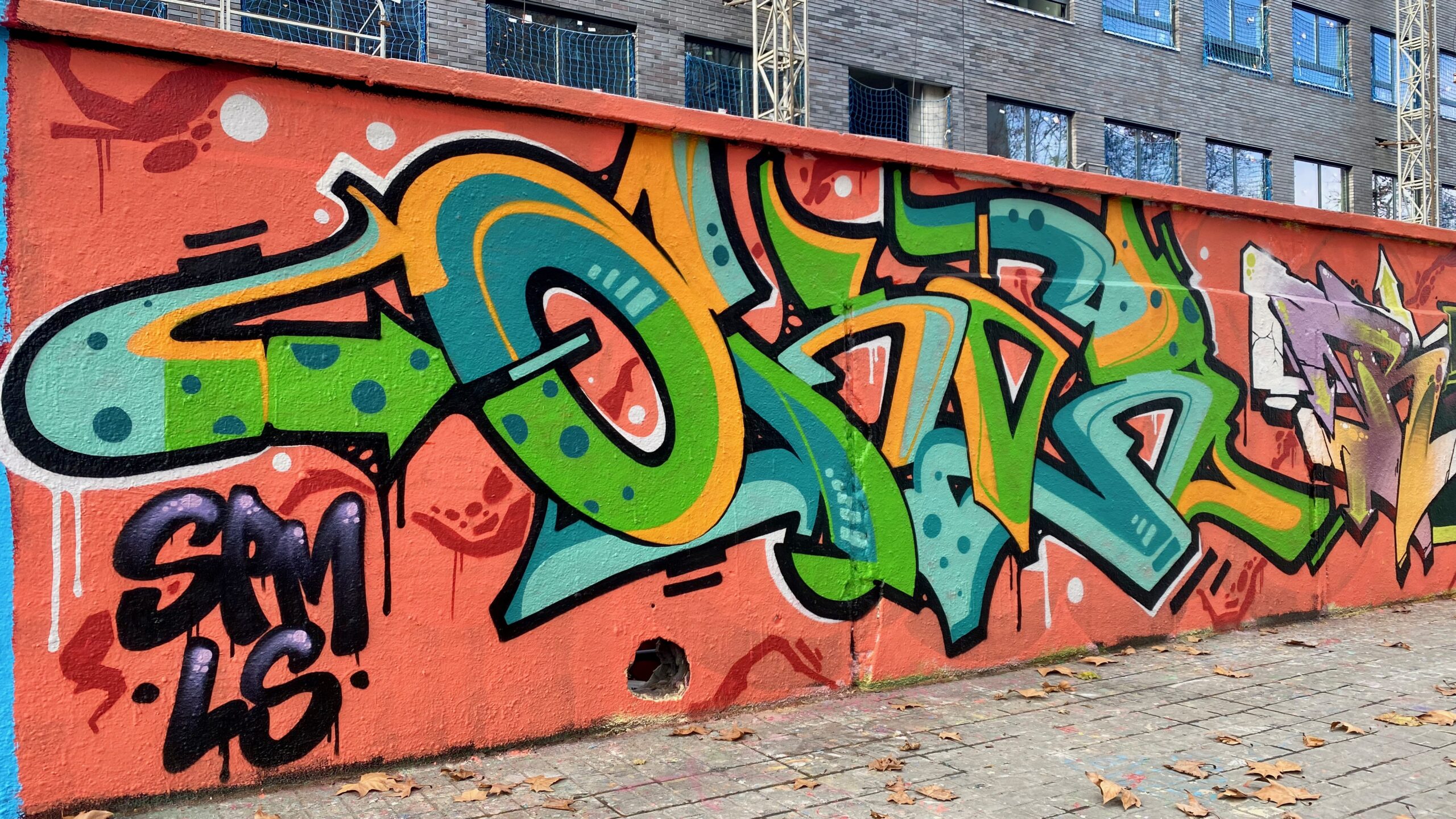 Il faut que vous sachiez que cette rue était certainement la plus graffée d’Europe ! Et en arrivant à son niveau, je comprends à quel point les choses ont changé. Les murs des usines en cours de destruction ont été remplacés par de la tôle ondulée ou par des grilles, ce qui ne laisse pas beaucoup d’espace pour la peinture. Mais les graffeurs qui vivent et bombent dans cette rue depuis des décennies ne se sont pas laissés démonter. Ils ont déjà commencé à investir les nouveaux murs qui encerclent les futurs bureaux et lofts du quartier ! Il y a un côté très hip-hop style et année 80 dans cette rue quasiment déserte puisqu’en construction. Il semblerait que les graffeurs n’aient pas dit leur dernier mot !