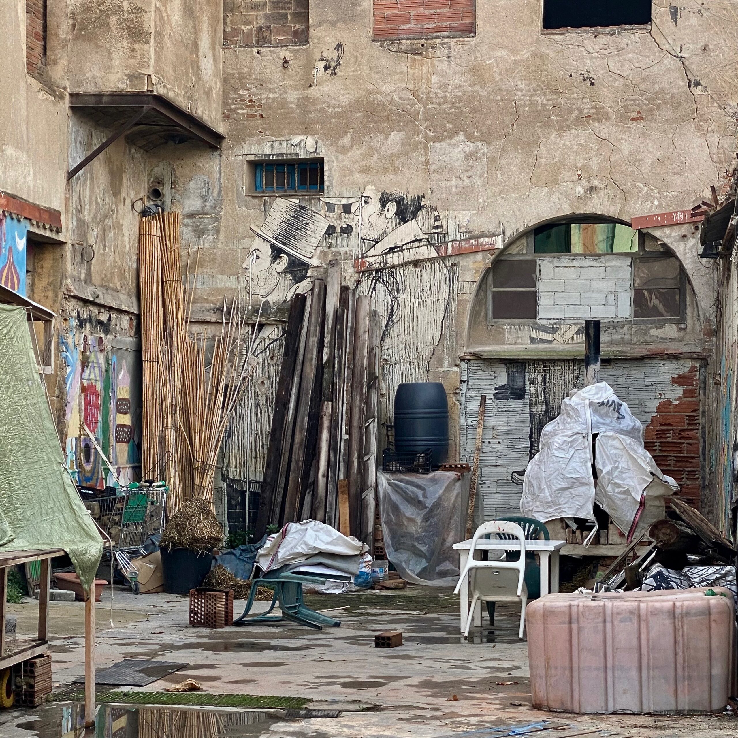 Cette ancienne usine de production de textiles a été transformée depuis 2008 en un immense espace de création artistique. Peintres, sculpteurs,… y travaillent et y vivent et profitent des équipements et du matériel mis à leur disposition par l’Associació d’Idees Ema. Sur le papier cela peut presque paraître idyllique ; mais quand on rentre dans La Escoceca on se retrouve surtout au cœur d’un bâtiment industriel complètement délabré et on a plus la sensation de rentrer dans un lieu croulant à l’abandon quand dans un espace de création artistique.