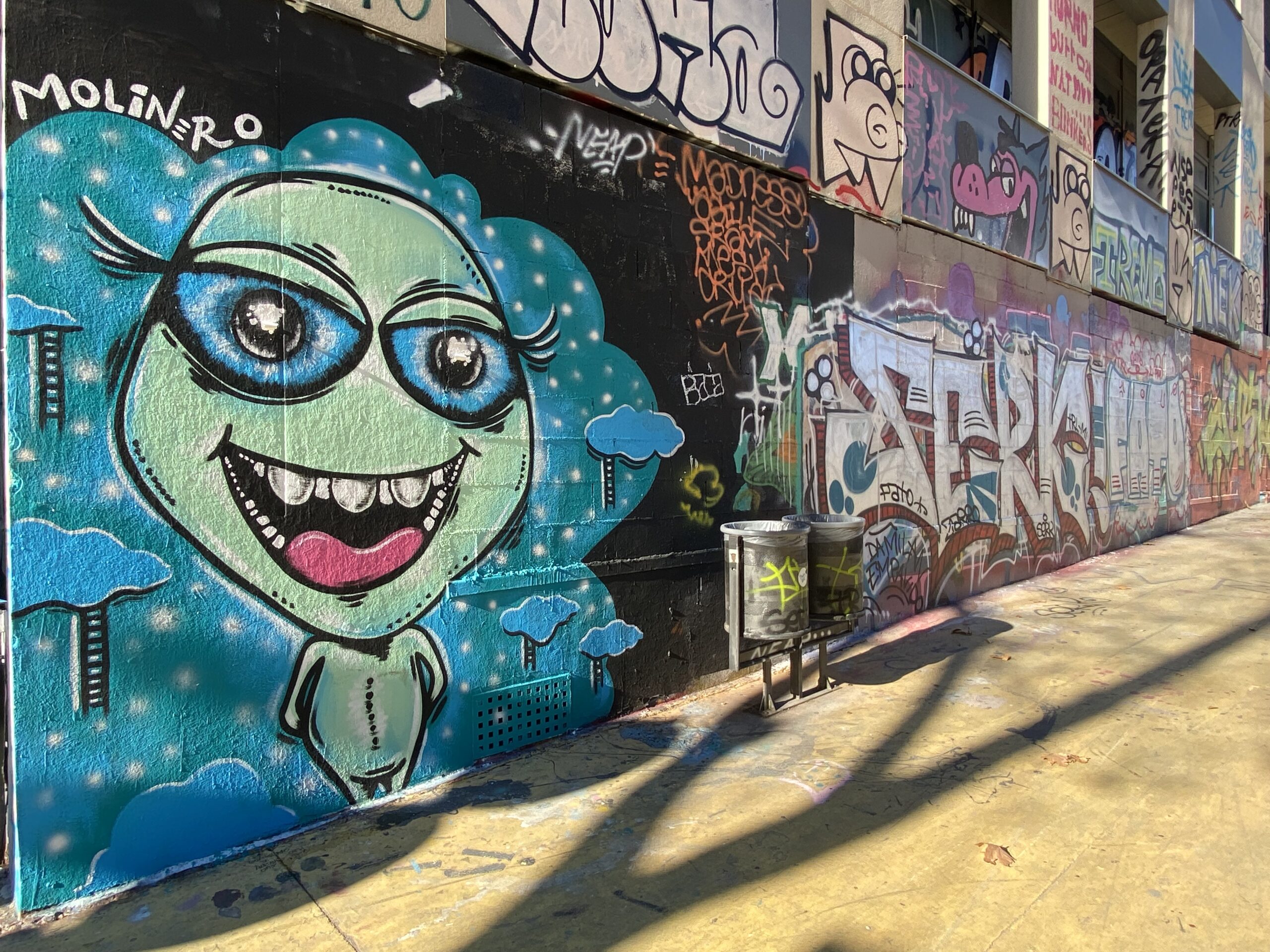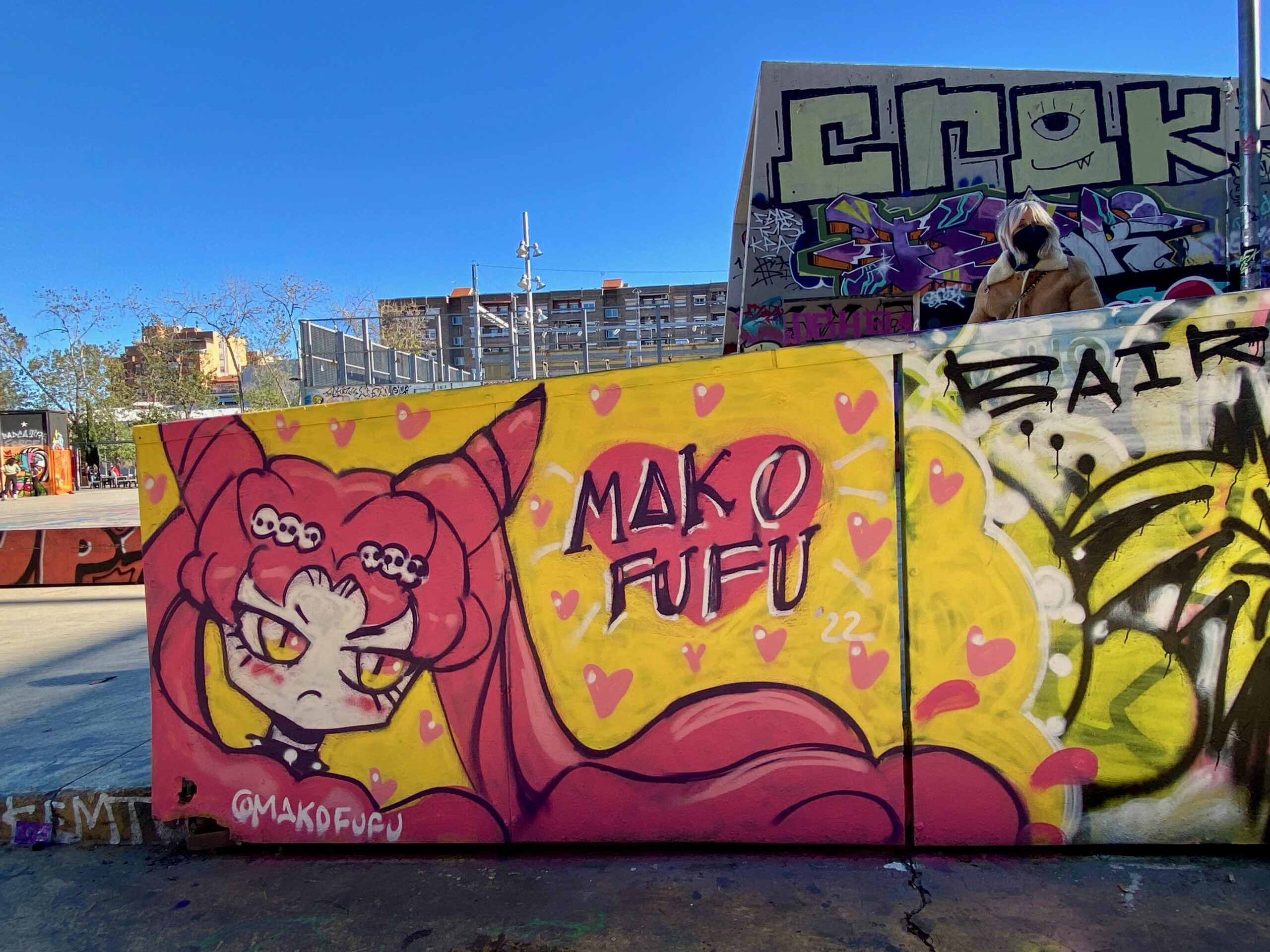 23 février 2022Trouver du graffiti à Barcelone est d’une facilité déconcertante. En fait il y en a dans tous les quartiers, même les plus chics ! Découvrir le petit poisson de PEZ ou les signatures d’autres artistes Barcelonais ne demande pas de faire un grand effort, juste celui d’ouvrir les yeux. Mais voilà j’avais envie de découvrir des graffeurs en train de travailler et c’est grâce à un post de l’artiste Natalia Molinero sur Instagram que j’ai repéré qu’elle était souvent au Jardin de las Tres Xemeneies. J’ai très vite compris que ce lieu était un spot incontournable pour voir des graffitis à Barcelone et qu’en plus il était en plein centre ville ! Je suis donc partie en repérage un samedi ensoleillé pour voir ce qu’il en était !