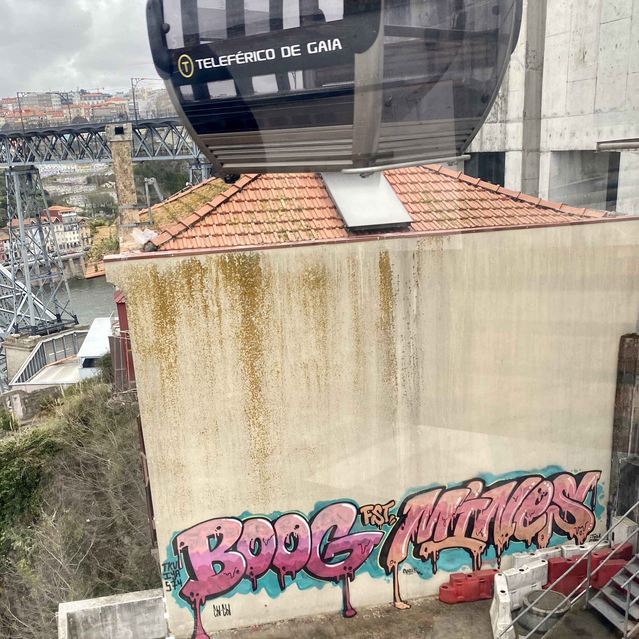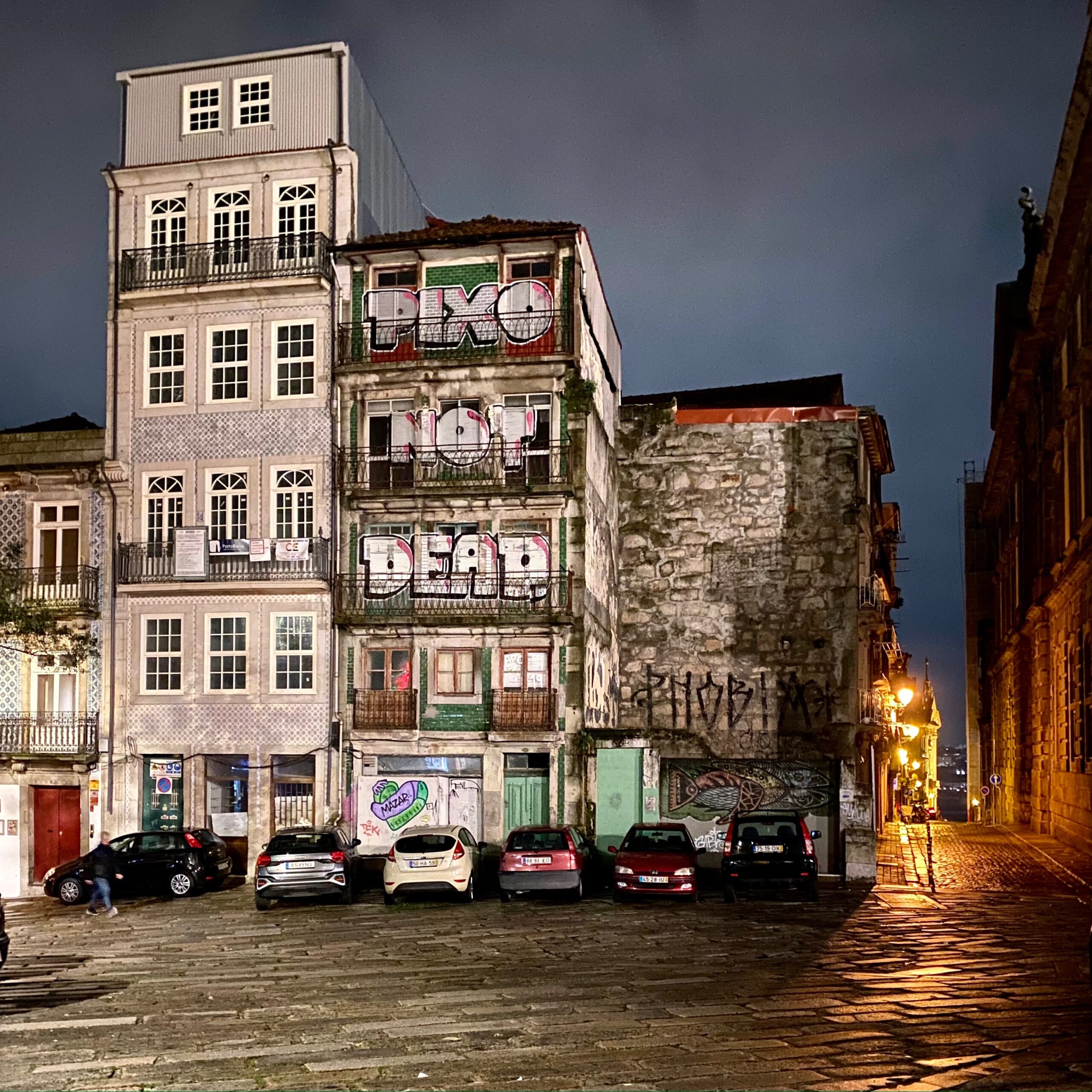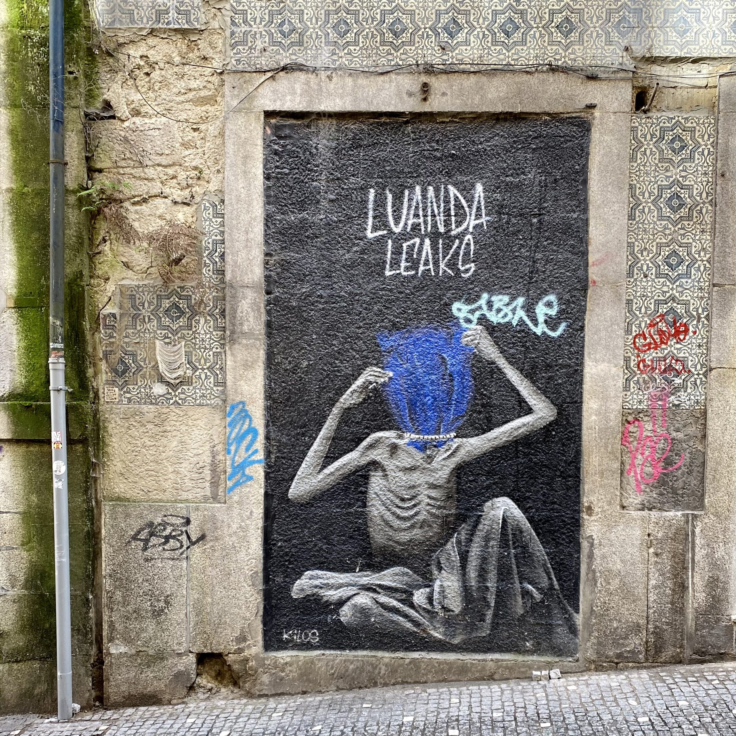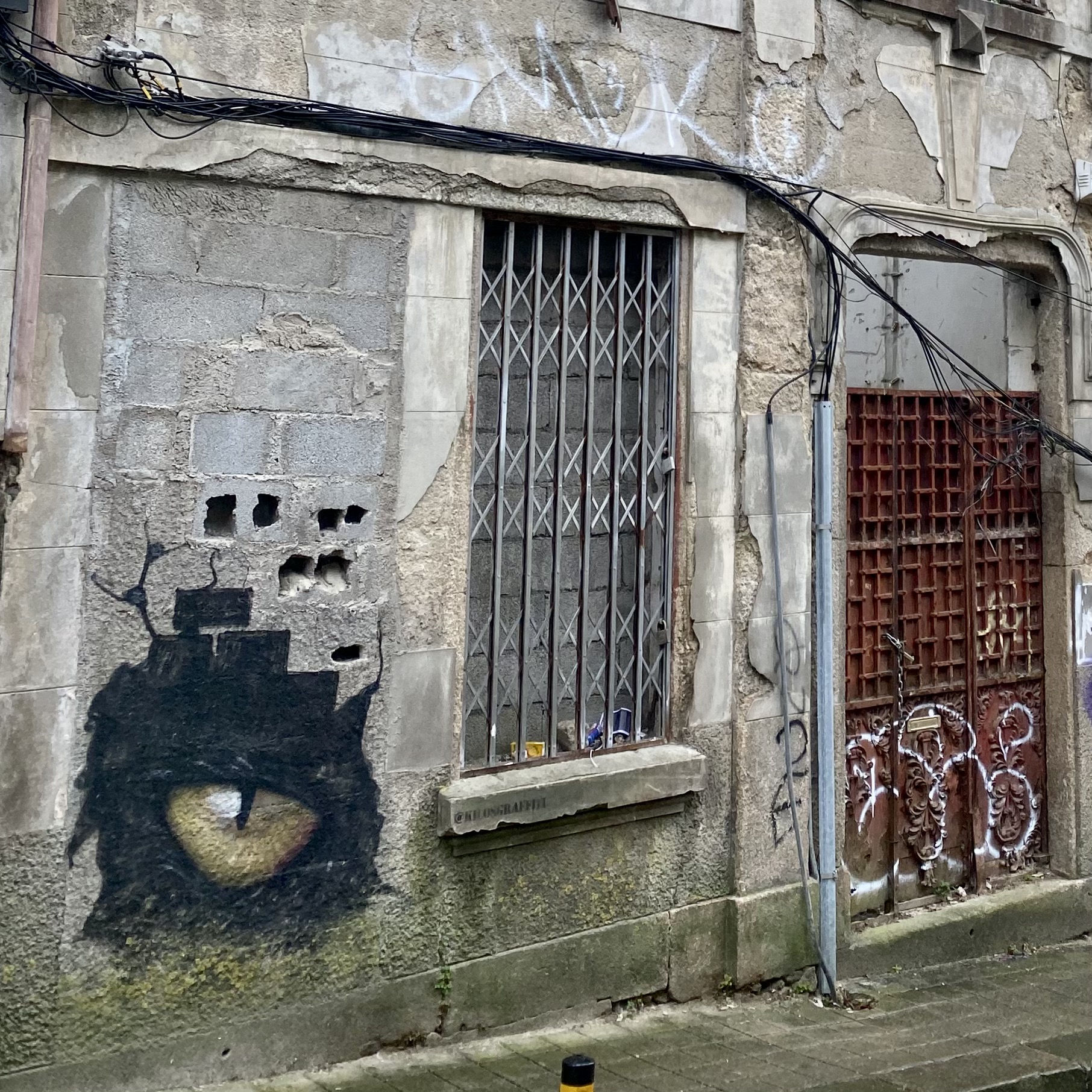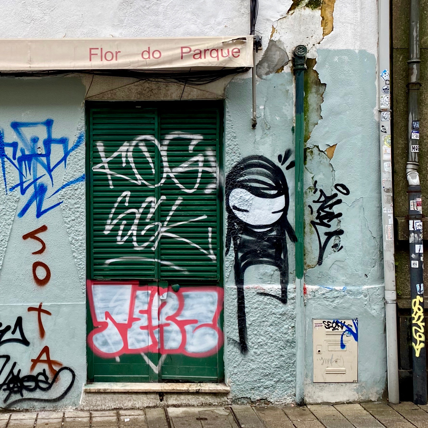 Étonnamment, on retrouve beaucoup d’œuvres, petites, discrètes, les signatures sont parfois redondantes… Et comme vous pouvez le constater, le Street Art à Porto est loin d’être anecdotique ! Les immeubles en fin de vie sont tous taggés au niveau des étages supérieurs ; ce qui est assez étonnant si on compare à d’autres pays comme la France, l’Espagne ou encore l’Angleterre où ce sont systématiquement les bas d’immeubles qui subissent l’assaut des tagueurs. À Porto, il faut lever la tête pour voir des Blazes !