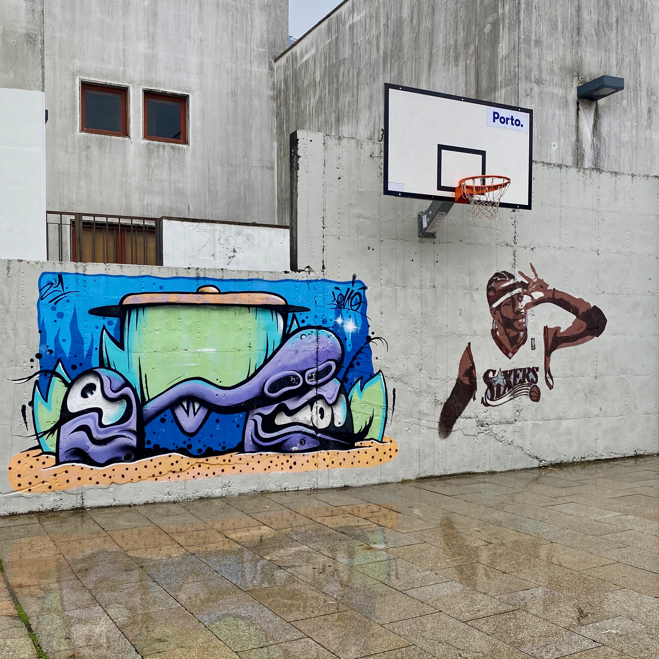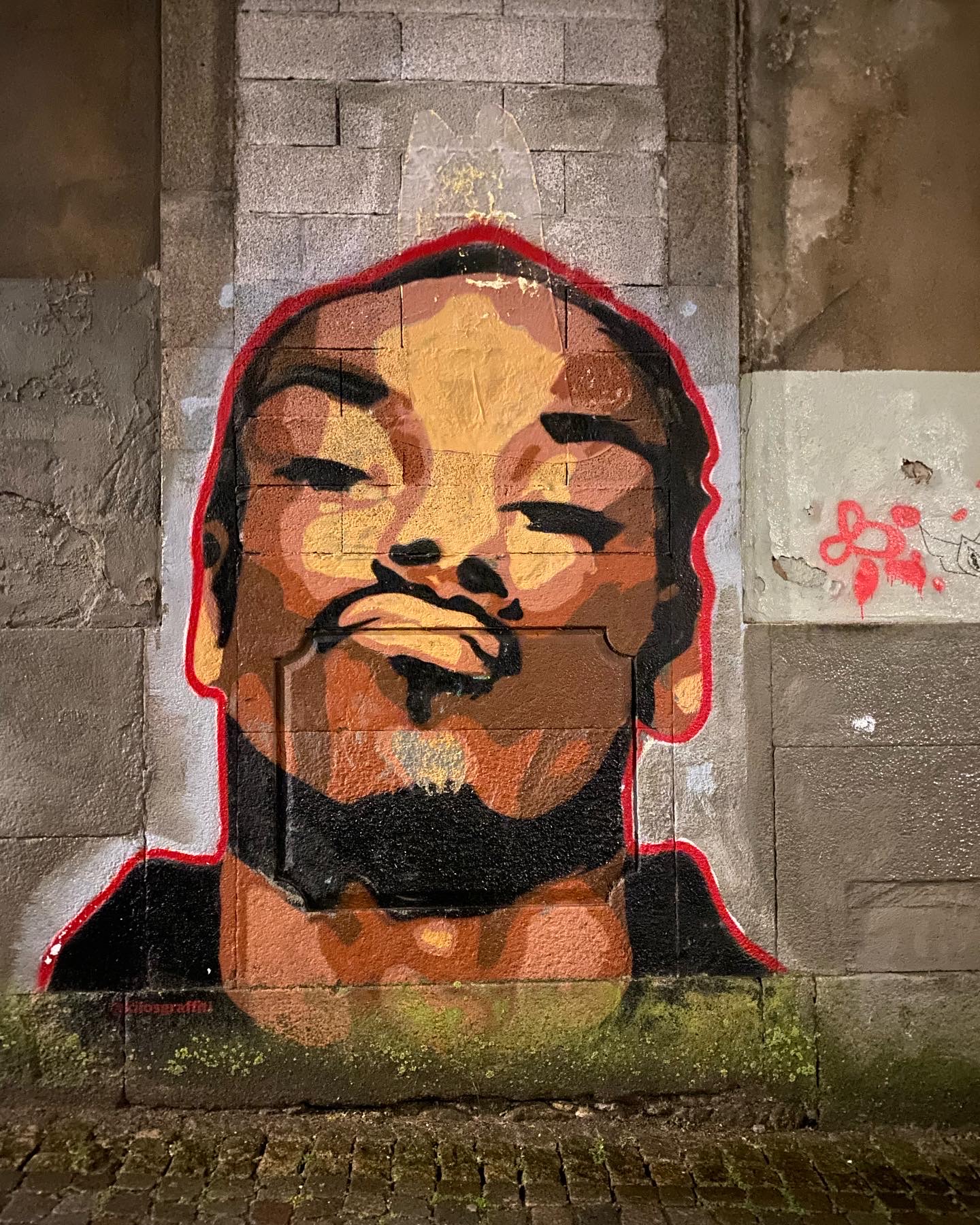 En sillonnant la ville, je m’attendais à découvrir le « lettering » stylisé de kilosgraffiti qui vit à Porto. Au lieu de cela, c’est la nuit que je tombe par surprise sur un « hall of fame » du rap qui me donne l’impression d’être à Brooklyn et non pas Rua de Restauraçāo à Porto ! On retrouve les portraits de Snoop Dog, 2PAC, Eminem, 50Cent, Ice Cube et Kanye West. Pour la petite histoire, le portrait de Snoop Dog a été réalisé en 2017 et la notoriété de Kilosgraffiti a traversé l’atlantique en quelques secondes lorsque le rappeur passionné de Street Art a reposté son portrait !