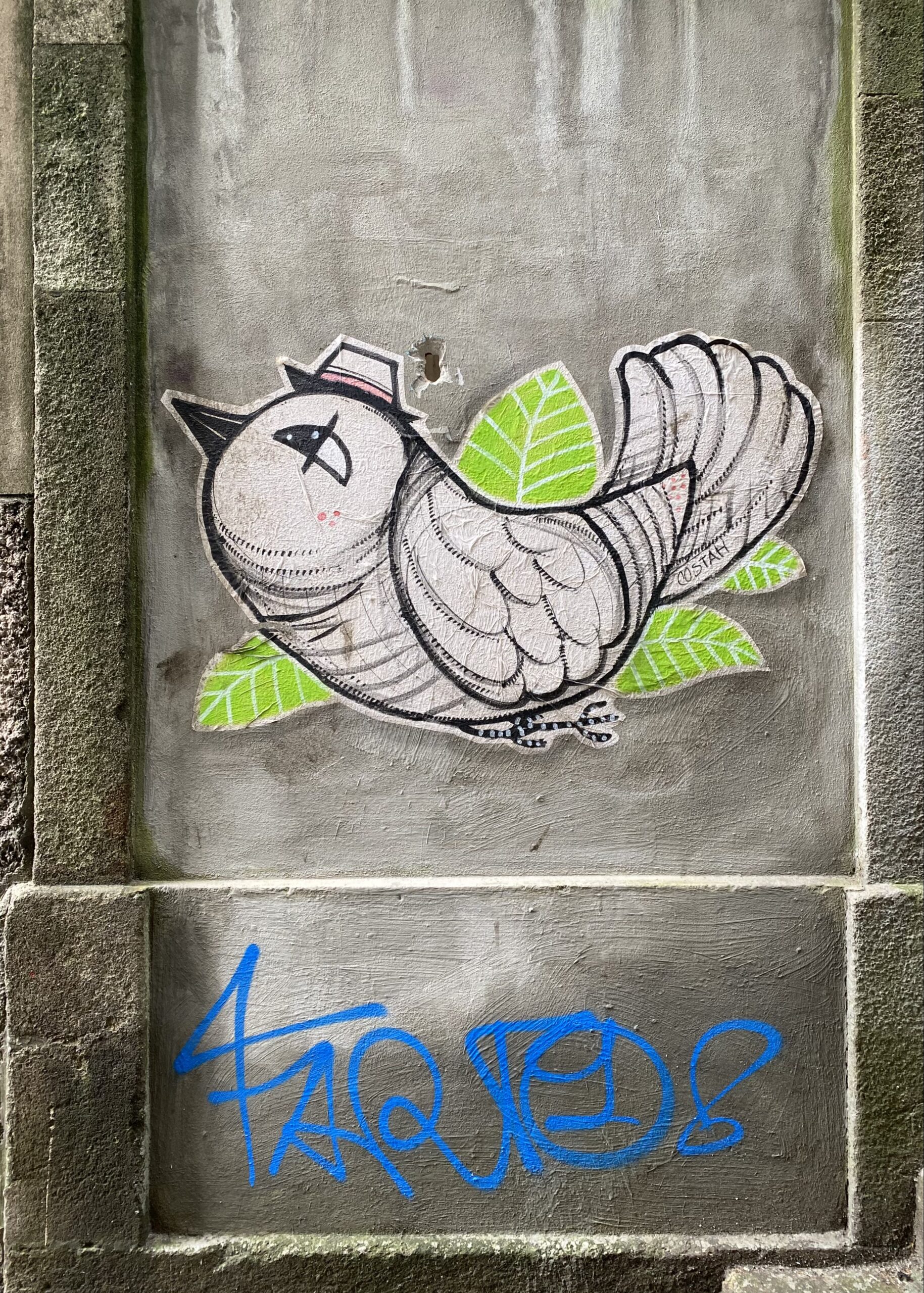 Il paraît que Costah est considéré comme le roi du Street Art à Porto ! Je ne peux pas vraiment le vérifier, mais oui cet artiste urbain et tatoueur est très certainement un de ceux qui a le plus investit la ville et qui plus est avec des personnages souriants et des messages d’espoir… Le roi, je ne sais pas ; mais peut-être le plus sympathique ?